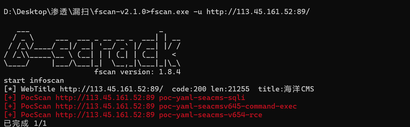 fscan扫描完,找个poc rce